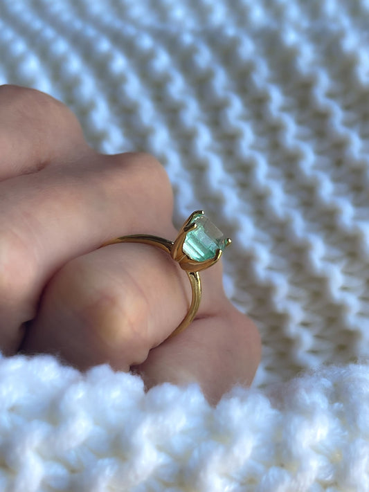 Natural Colombian Emerald Solitaire Ring in 14k Solid Gold