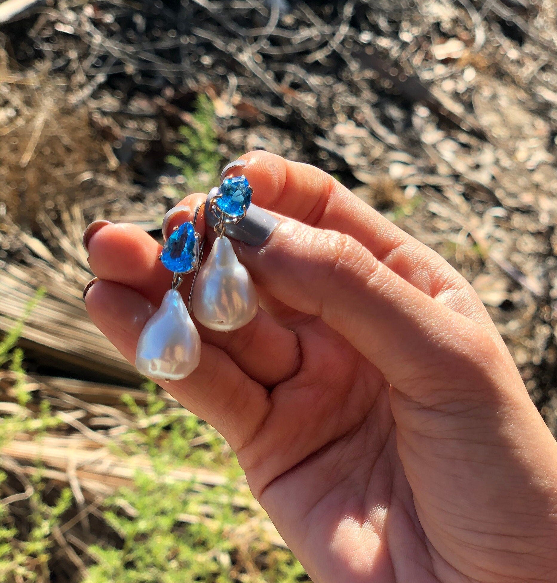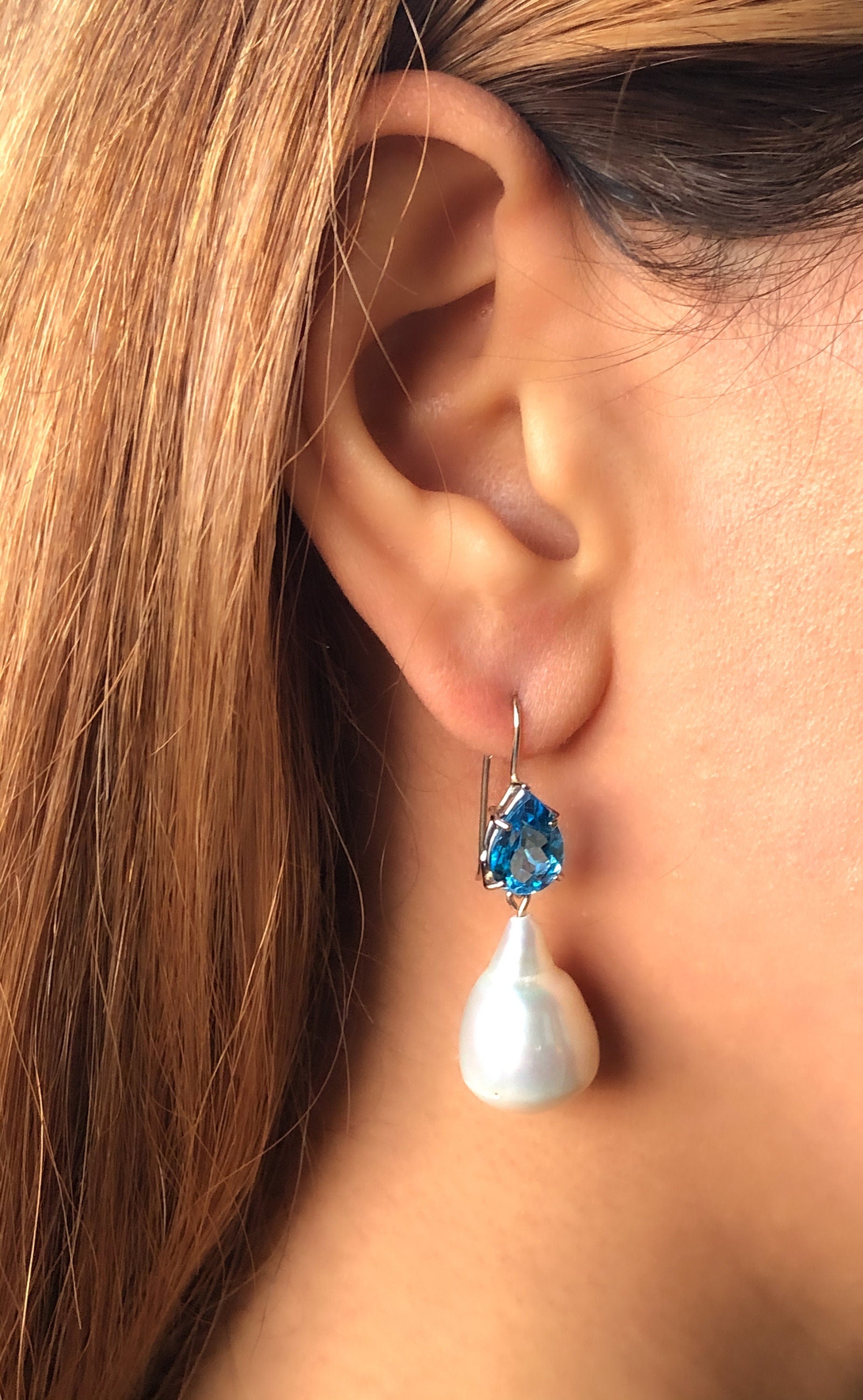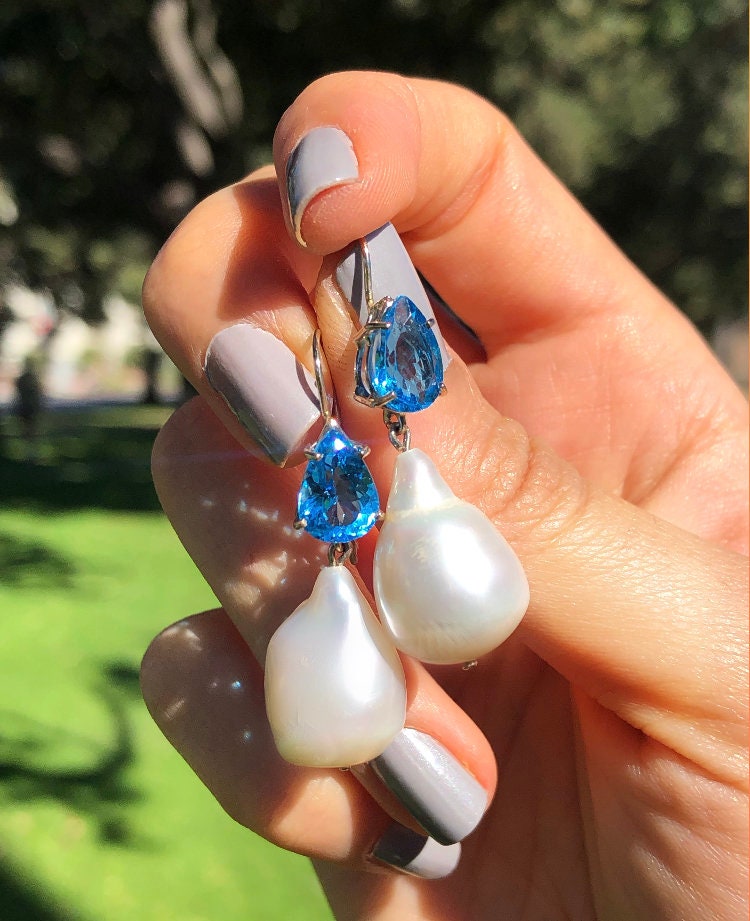• Stones: Natural Blue Topaz & Genuine Baroque Pearl