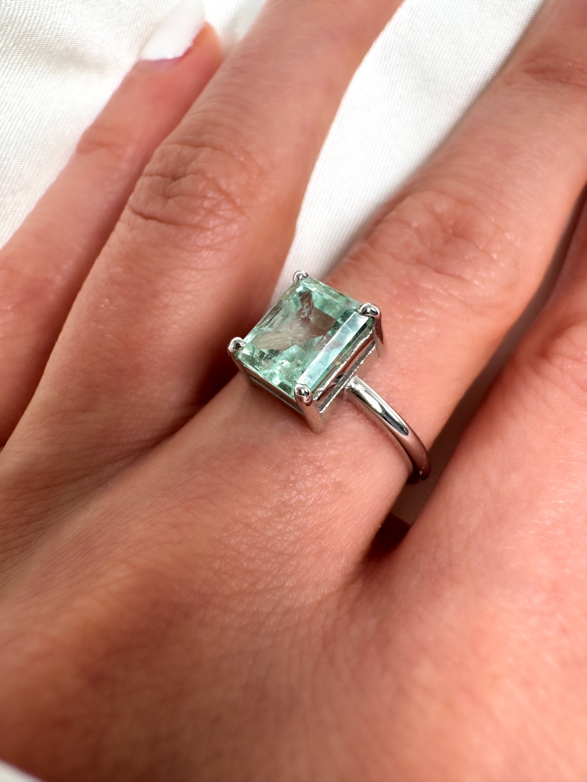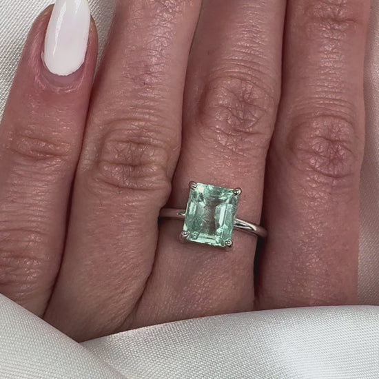 ◆ Natural Colombian Light Green Emerald-Cut Emerald (Green beryl) Solitaire Ring