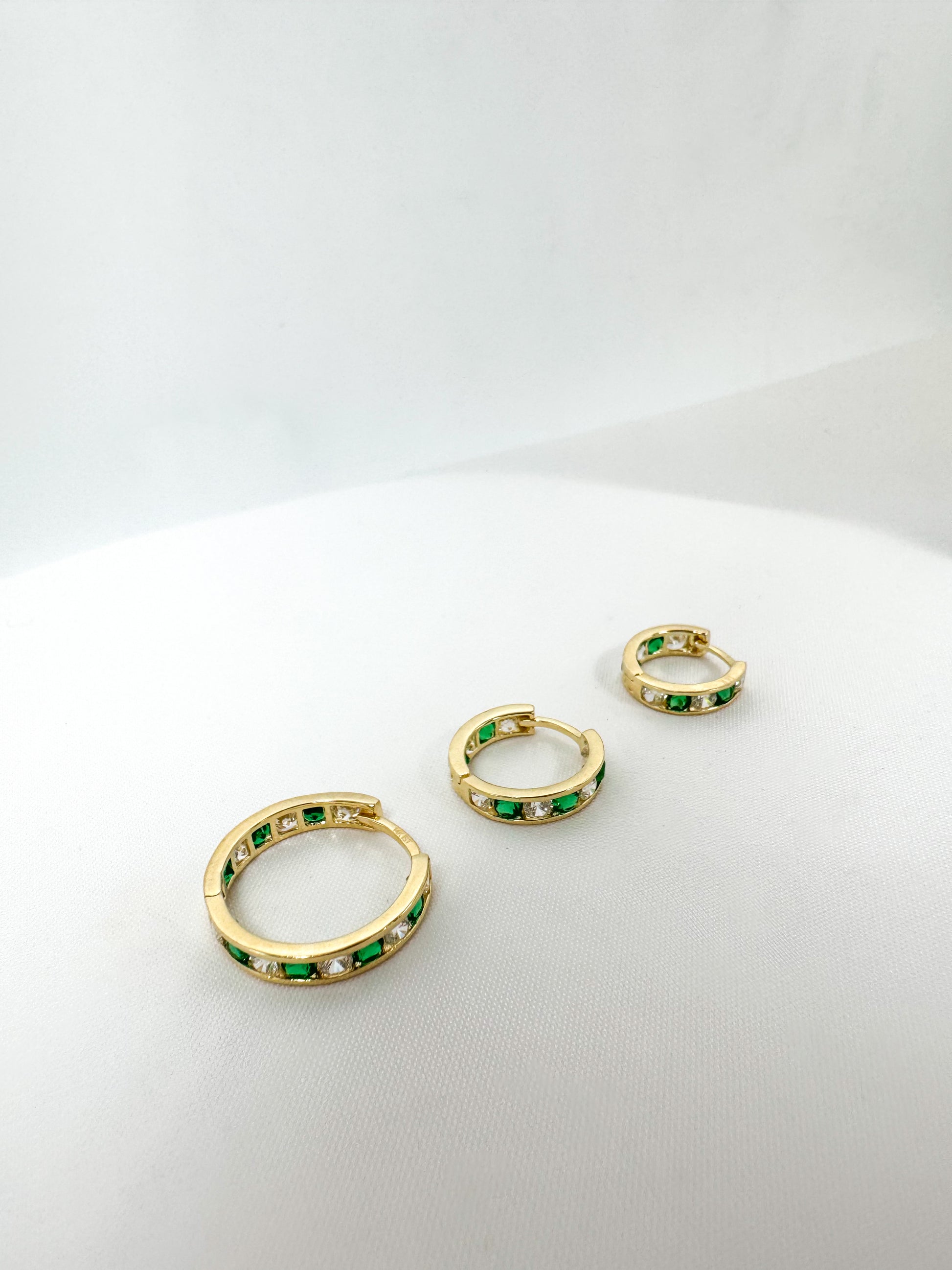 14k Solid Gold Emerald Diamond Huggie Hoop Earrings