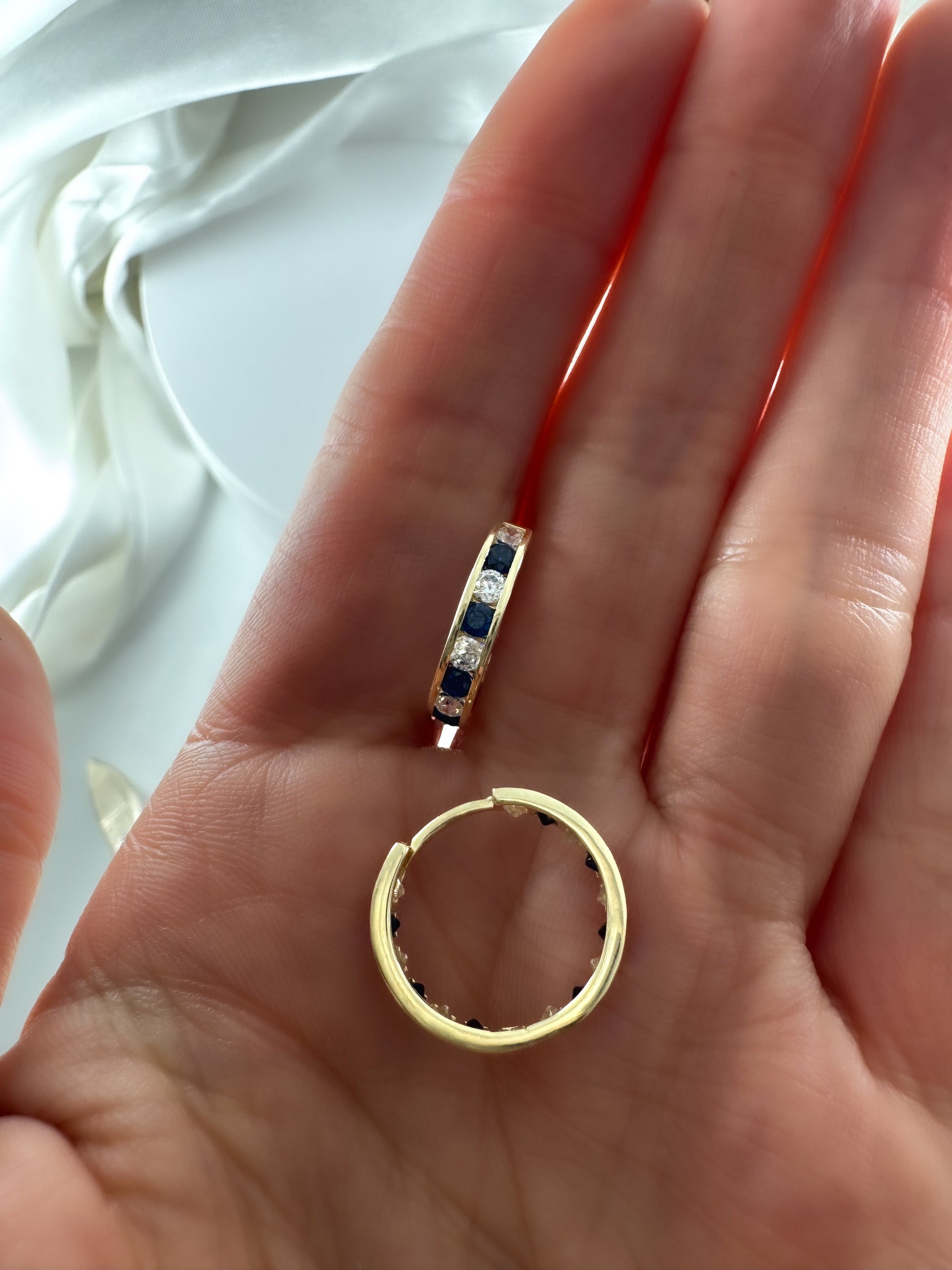 14k Solid Gold with Sapphire and Diamond Huggie Hoop Earring