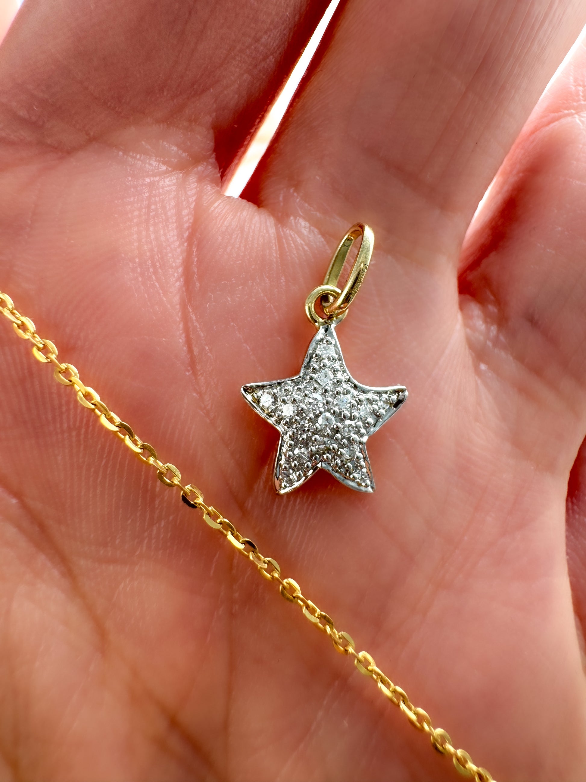 A delicate star shaped charm crafted in genuine 14k solid gold and natural diamonds, a meaningful celestial piece designed to sparkle in your everyday moments.