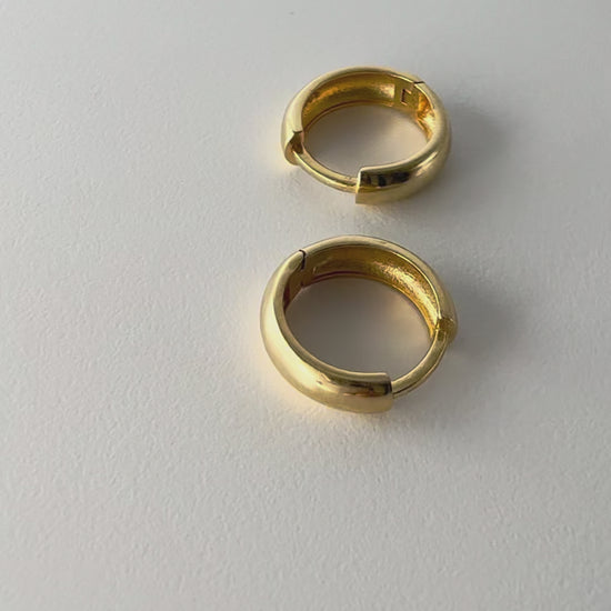 14k Solid Gold Huggie Hoop Earrings: Chunky Minimalist Hoops