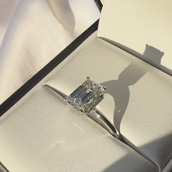 2Ct Emerald Cut Diamond Hidden Halo Engagement Ring in 14k Solid Gold