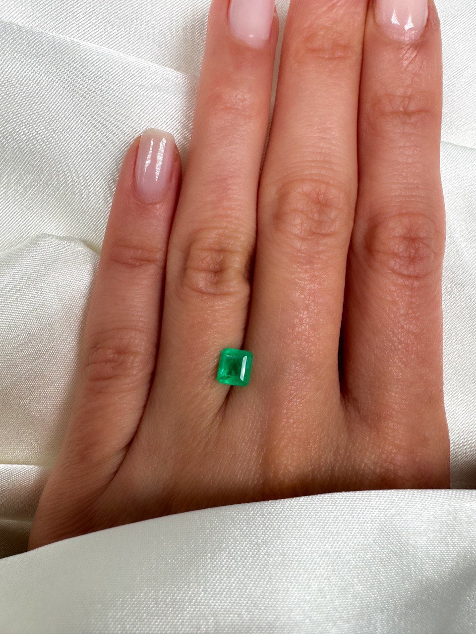 This Natural Colombian Emerald, the birthstone of May, carries the Bluish Green, a symbol of rebirth and love. The perfect stone for an engagement ring, wedding ring, or Promise ring.