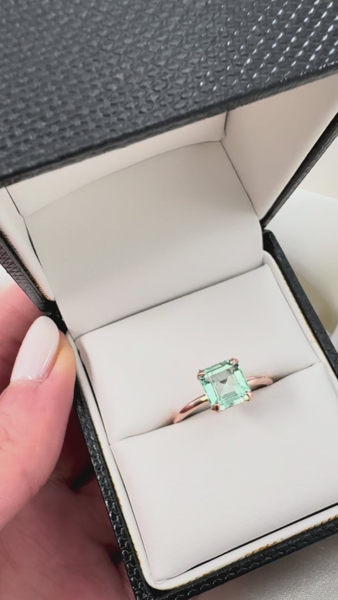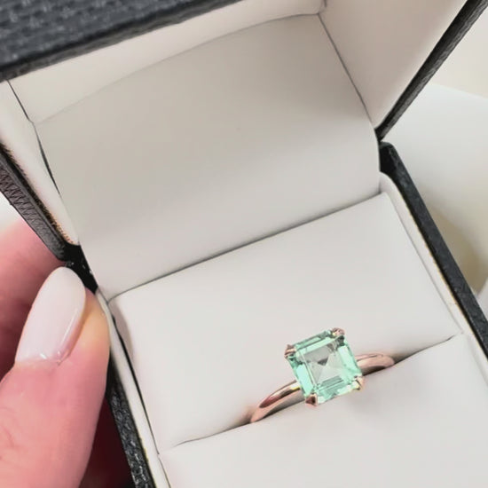 ◆ Natural Colombian Light Green Emerald-Cut Green beryl Solitaire Ring
