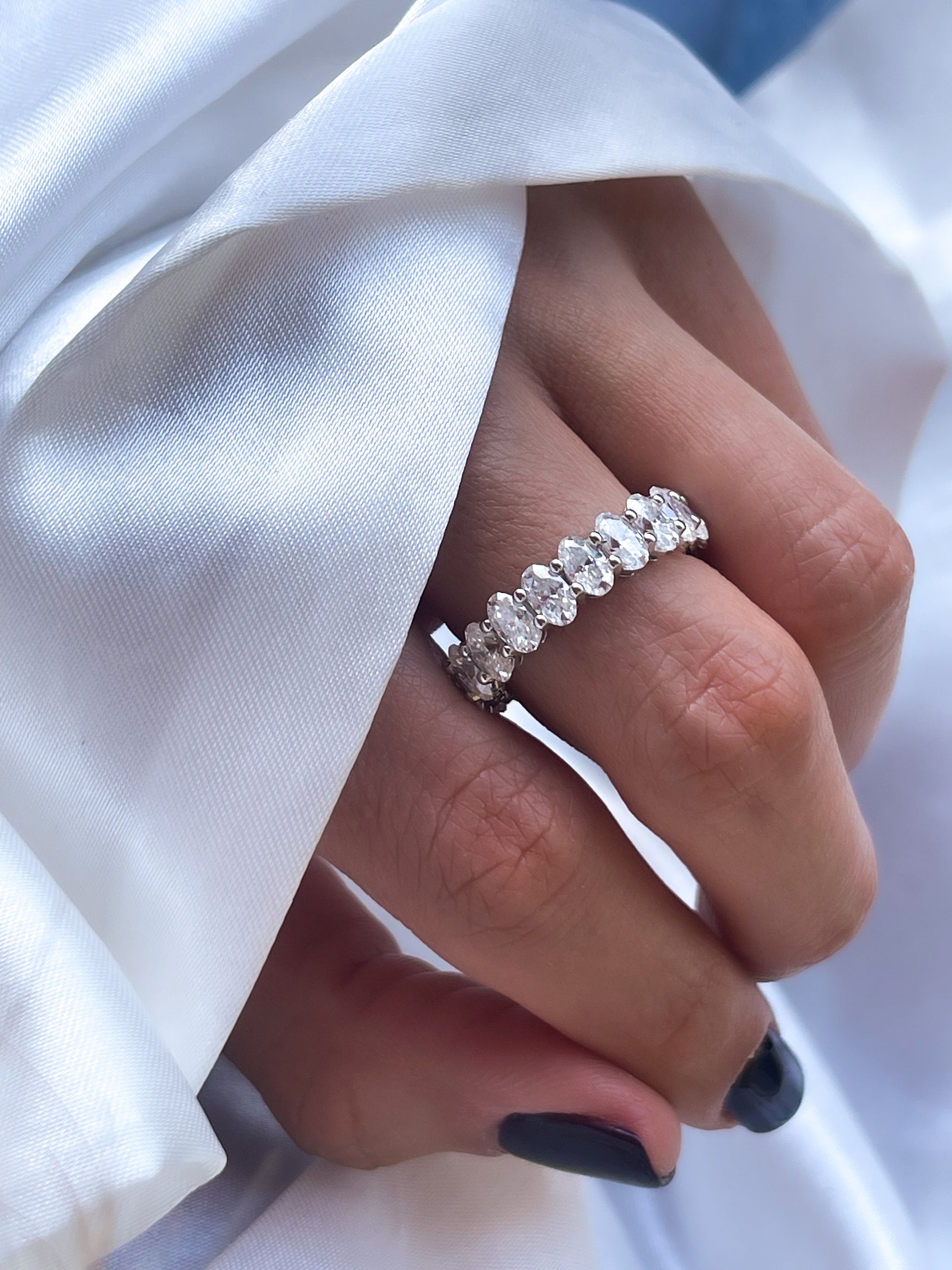 ◆ OVAL CUT FULL ETERNITY MOISSANITE WEDDING BAND in 14k GOLD