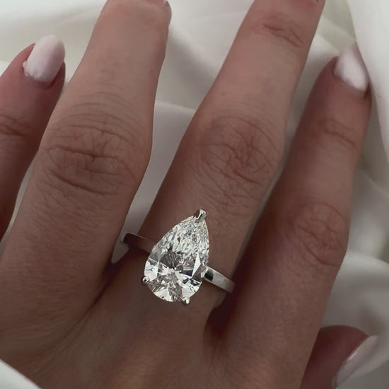 ◆ This breathtaking pear-cut lab grown diamond engagement ring radiates timeless elegance with a sleek, minimalist 3-prong setting that allows maximum light to pass through the diamond, enhancing its brilliance and fire.