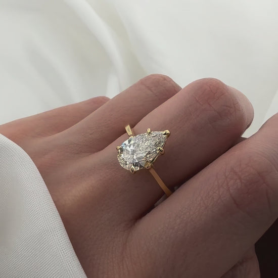 Pear Shape Lab Diamond Engagement Ring in 14K Solid Gold