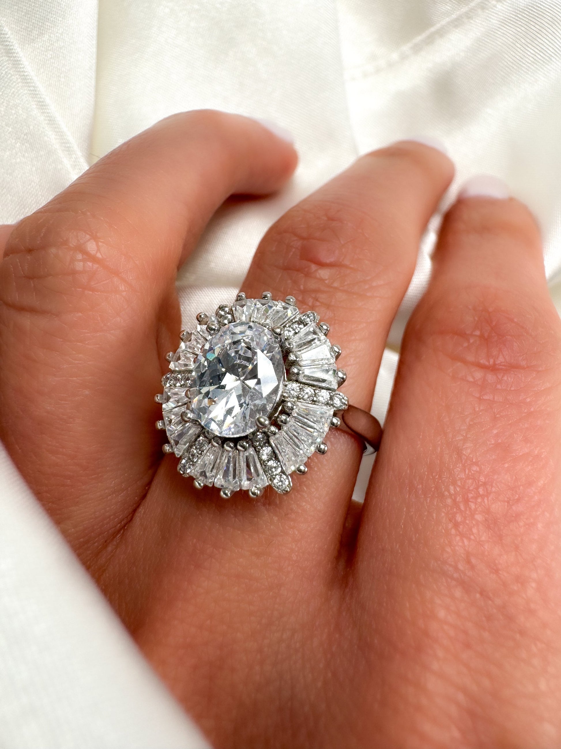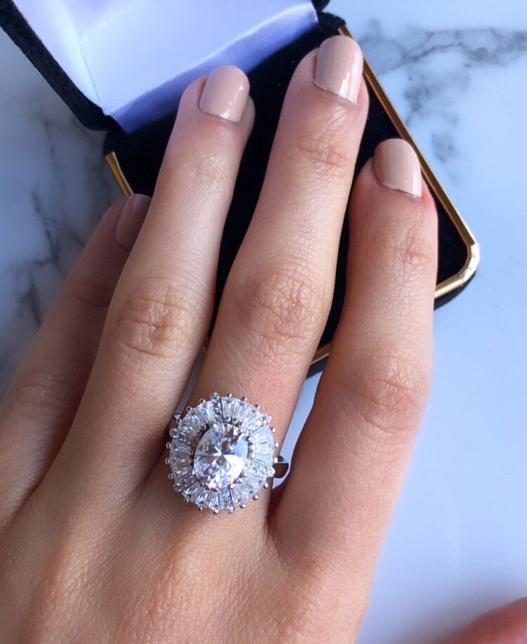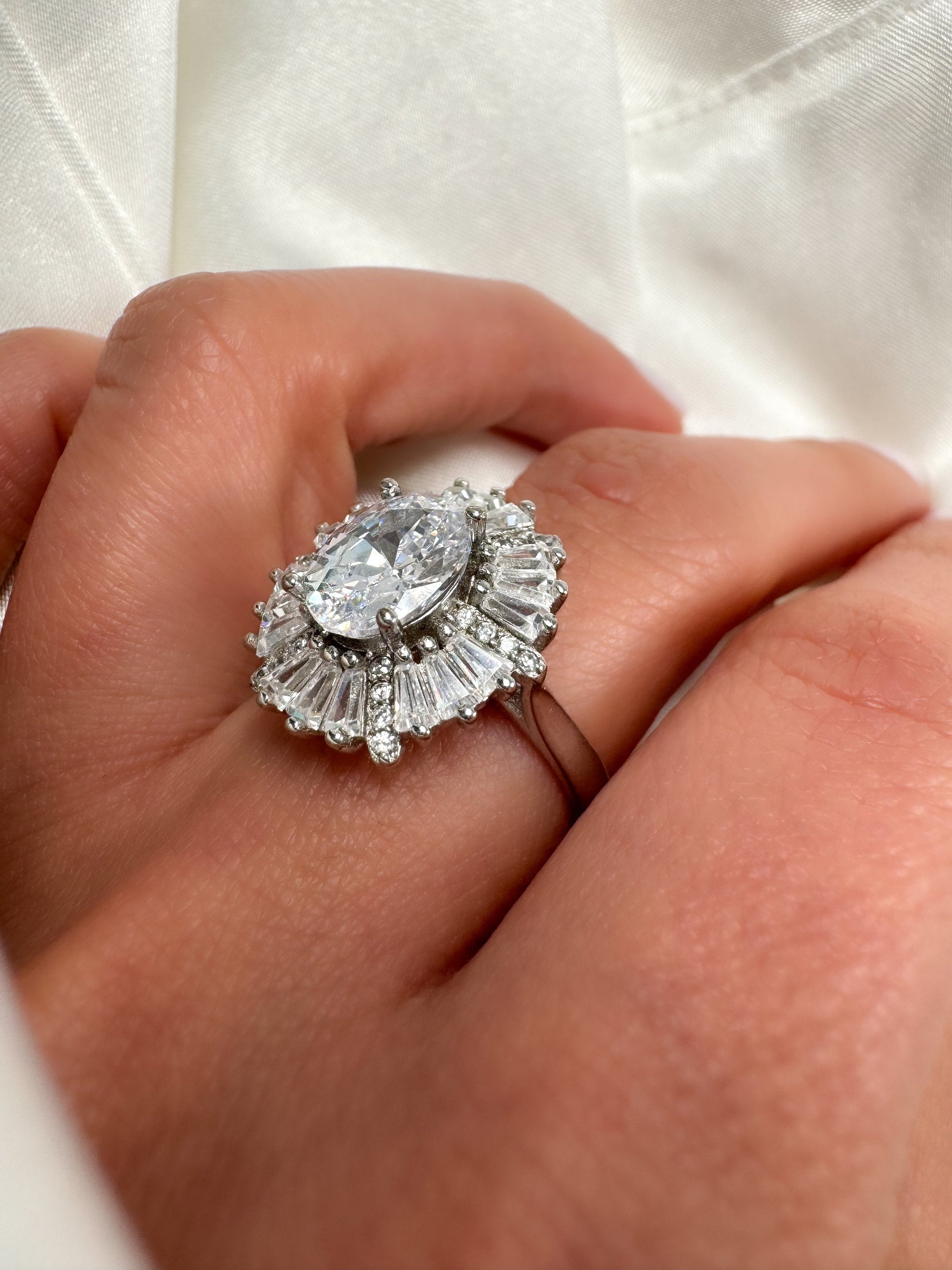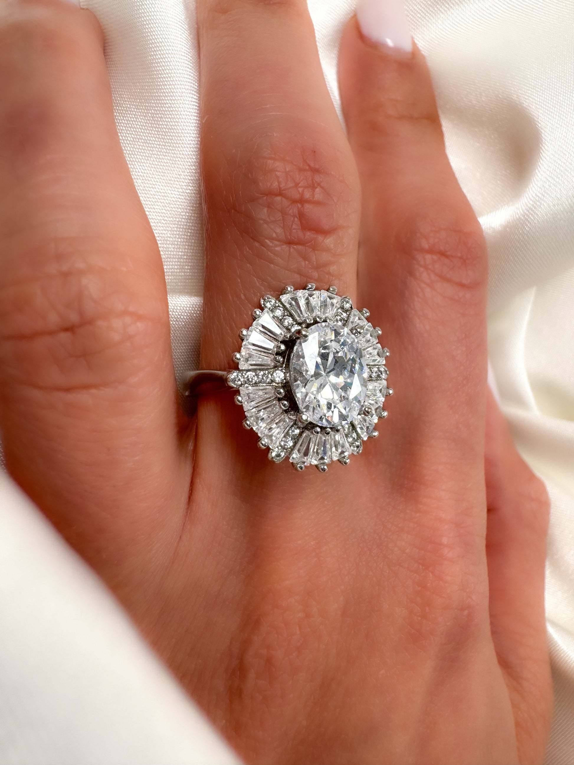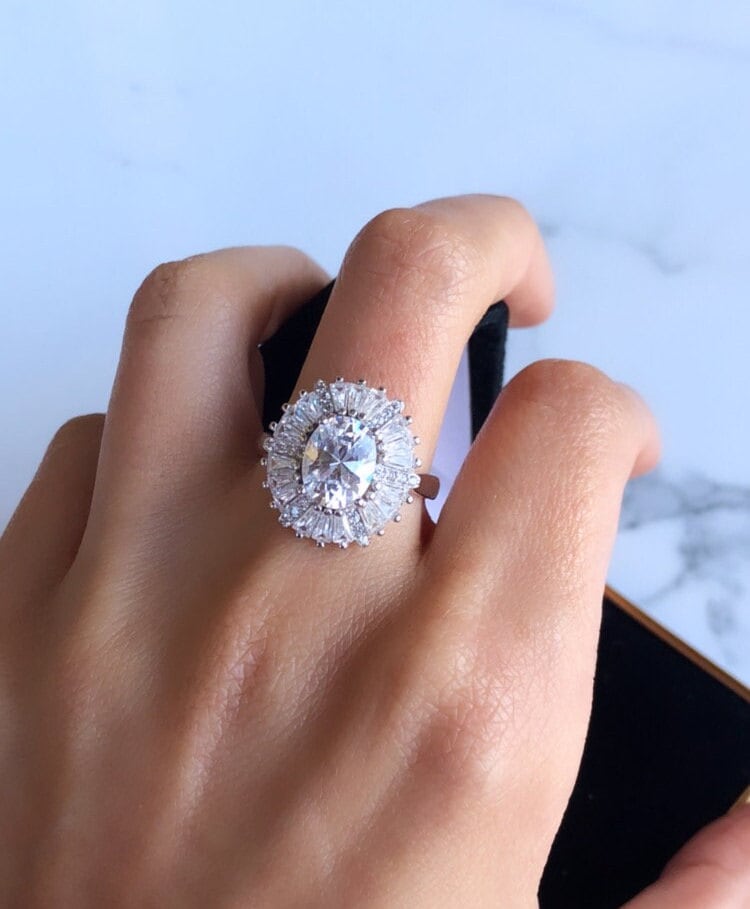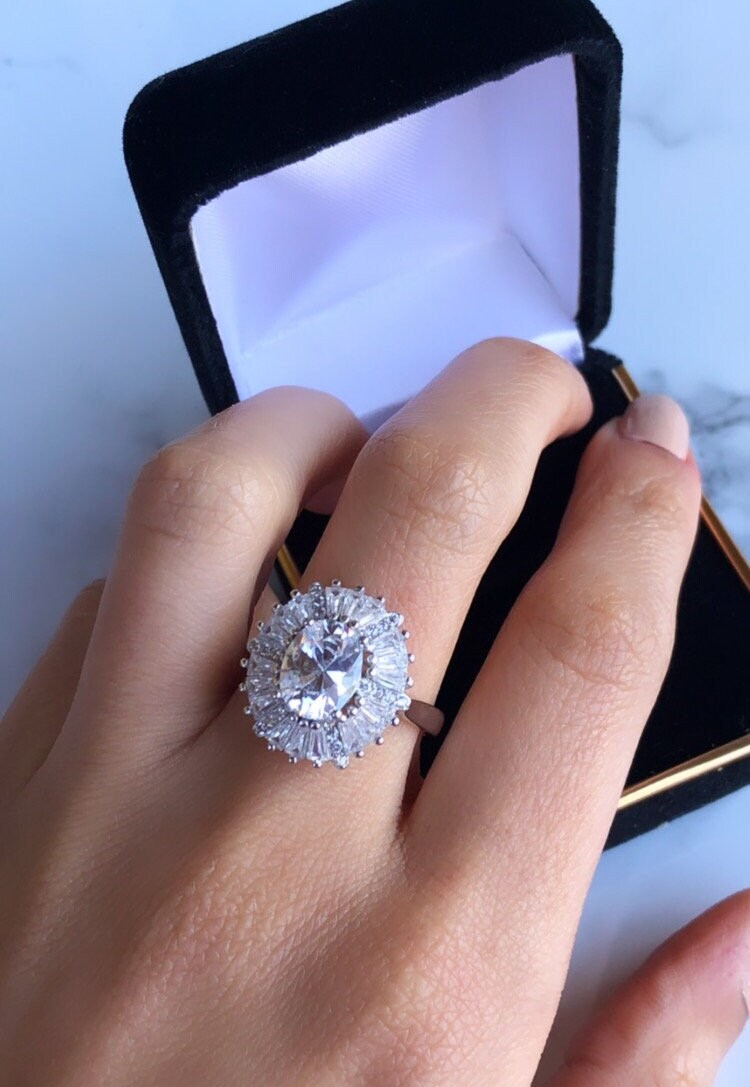 "2 CT OVAL CUT STERLING SILVER HALO ENGAGEMENT RING"