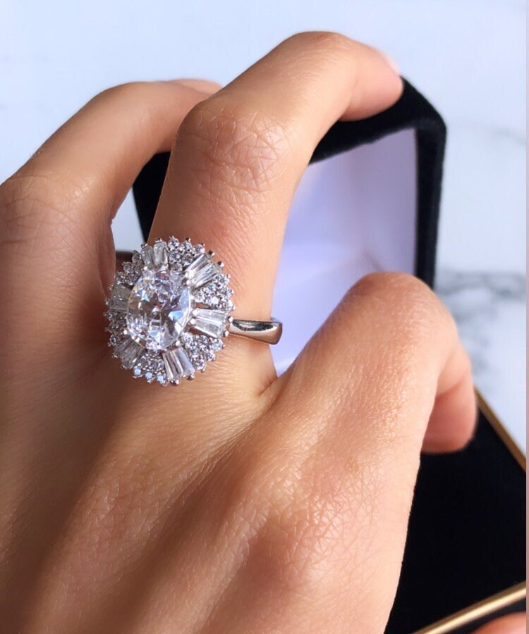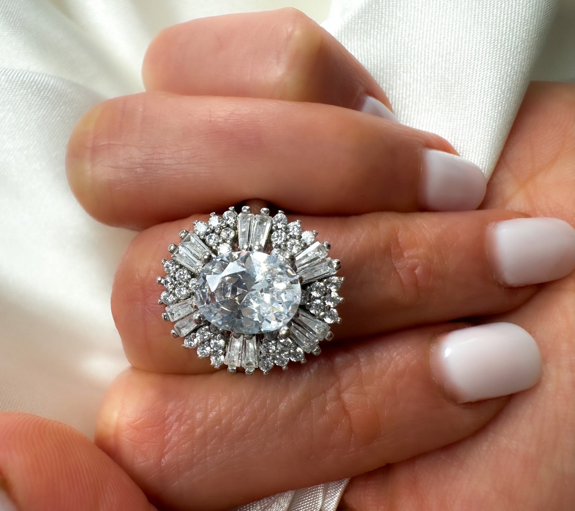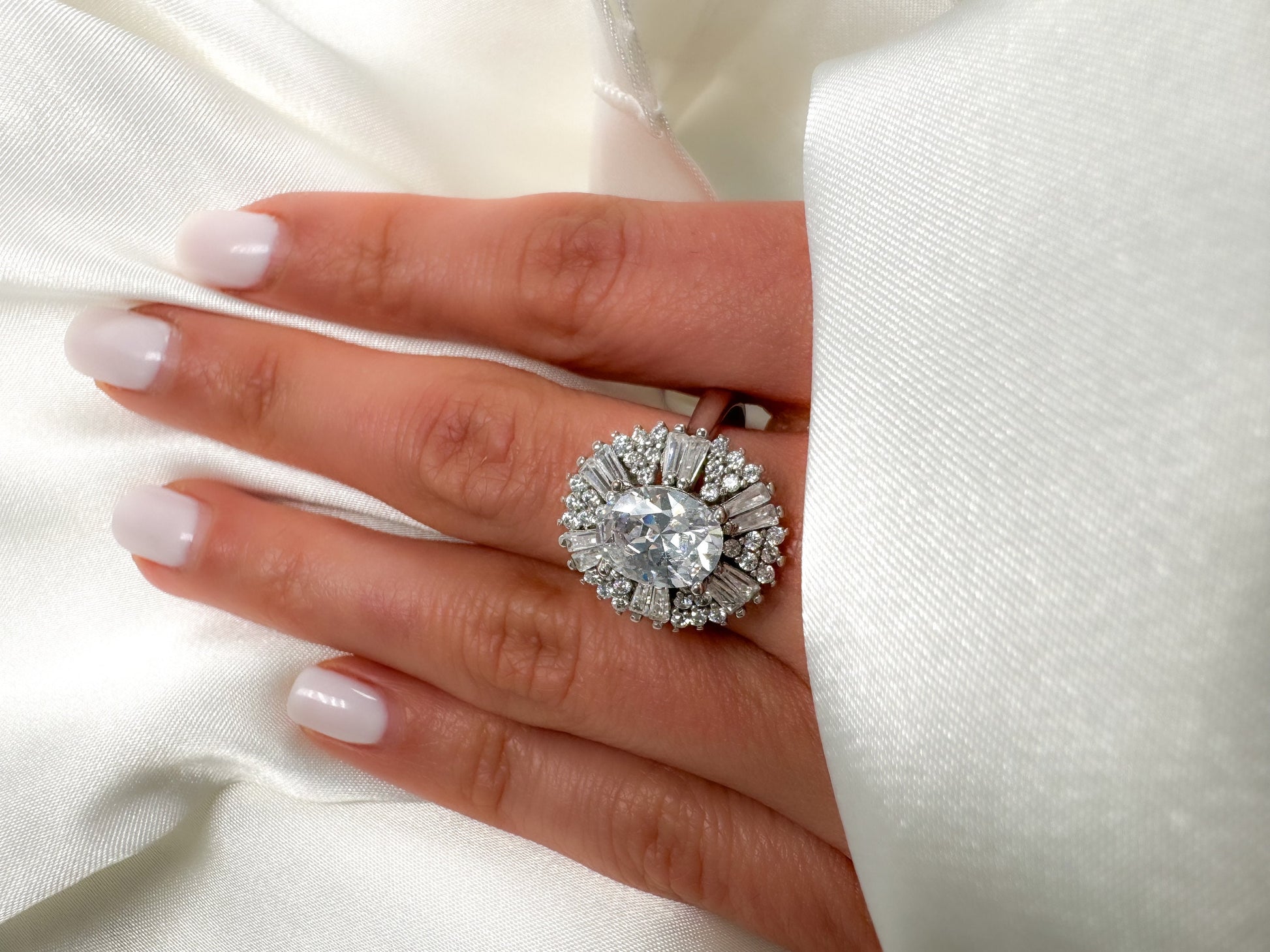 "2 CT OVAL CUT STERLING SILVER HALO ENGAGEMENT RING"
