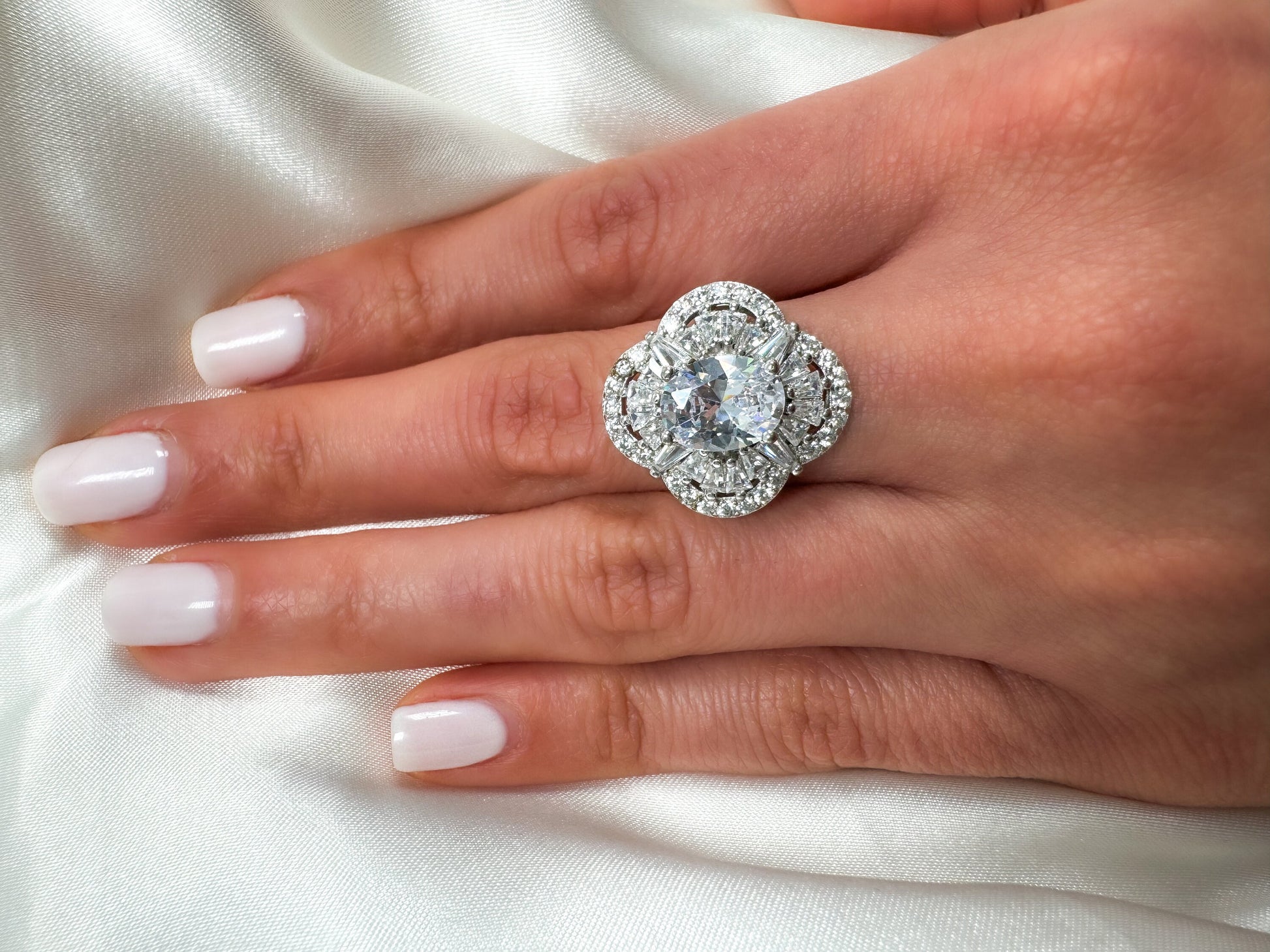 "2 CT OVAL CUT STERLING SILVER HALO ENGAGEMENT RING"