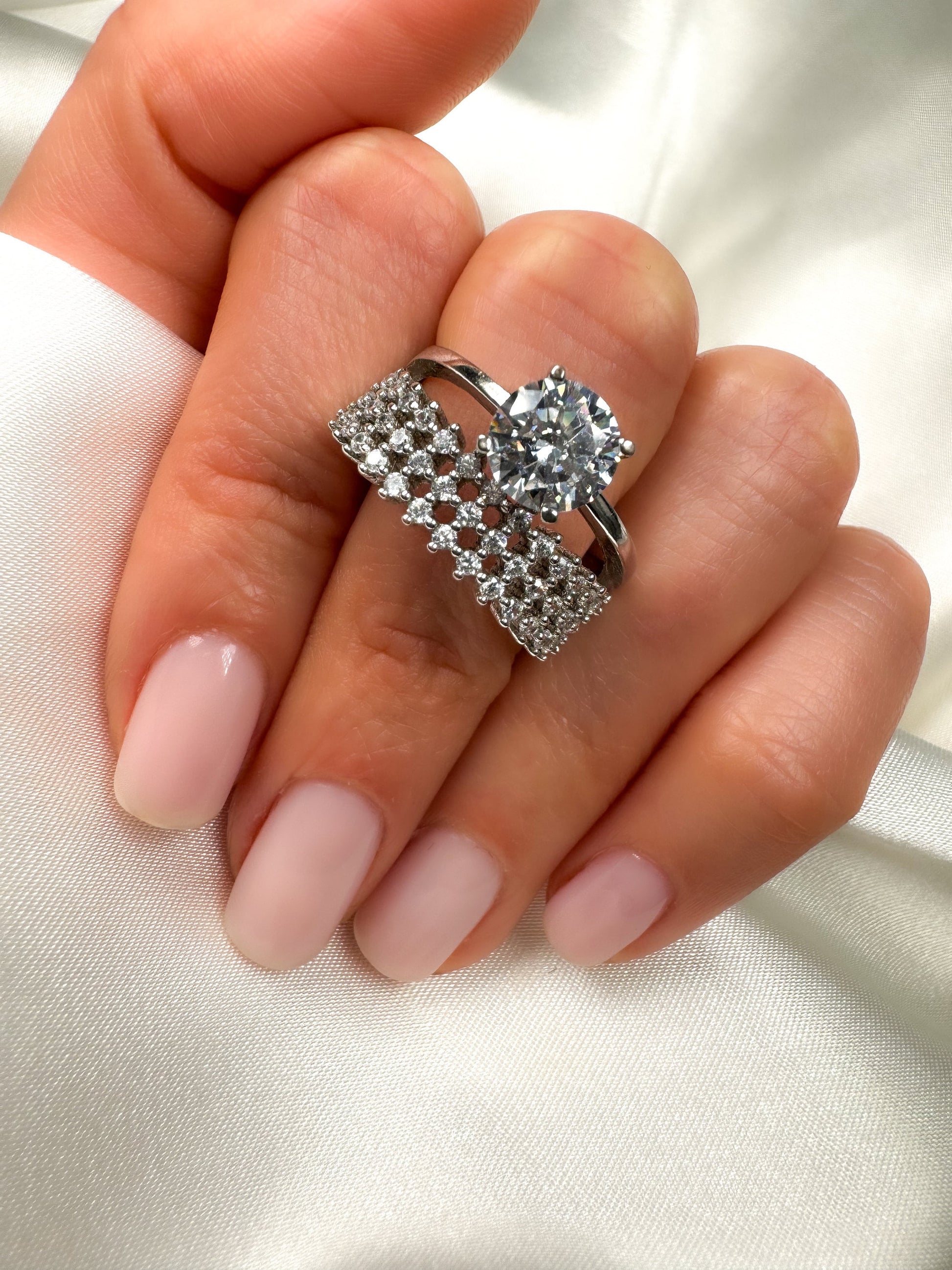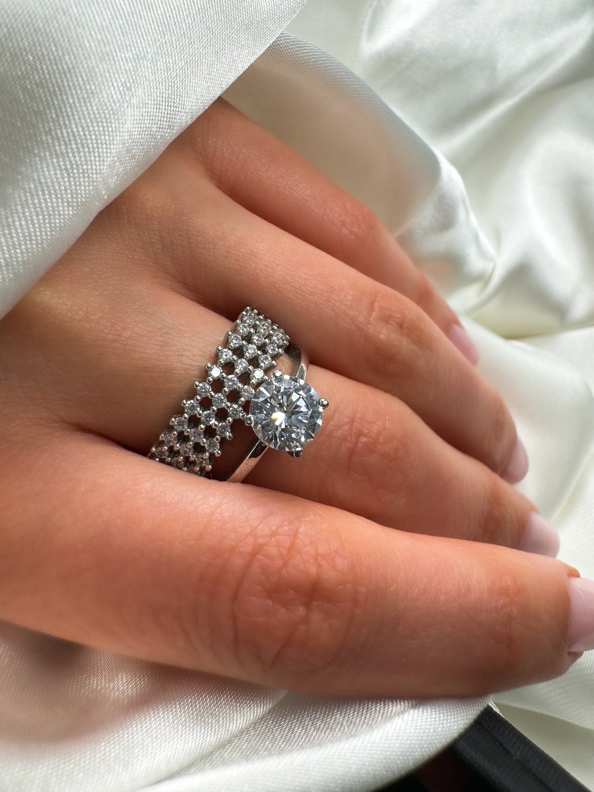 ✦ The wedding band is attached to the solitaire ring(One piece Ring)